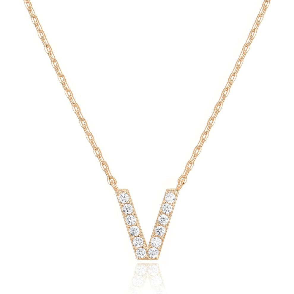 (Rose Gold, - V) HKEDES 14K White Gold Plated Cubic Zirconia Initial Necklace | Letter Dainty Necklaces for Women