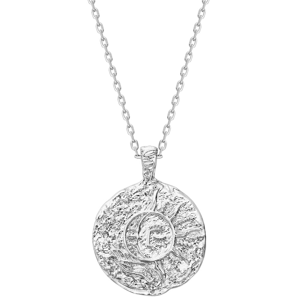 (White Gold, Moon) HKEDES 14K Gold Plated Engraved Coin Pendant Necklaces for Women | Byzantine Coin Pendants | Bohemian Necklace