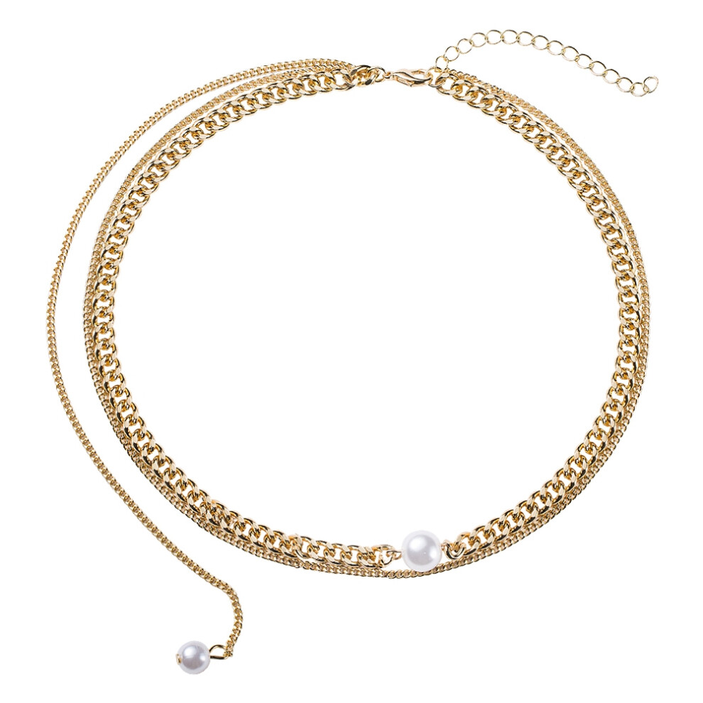 Cultured Small White Pearl Necklace For Women, Stack Layering Gold Necklace With Unique Design Shiny Faux Pearl Accents, Layered Necklaces For Women E