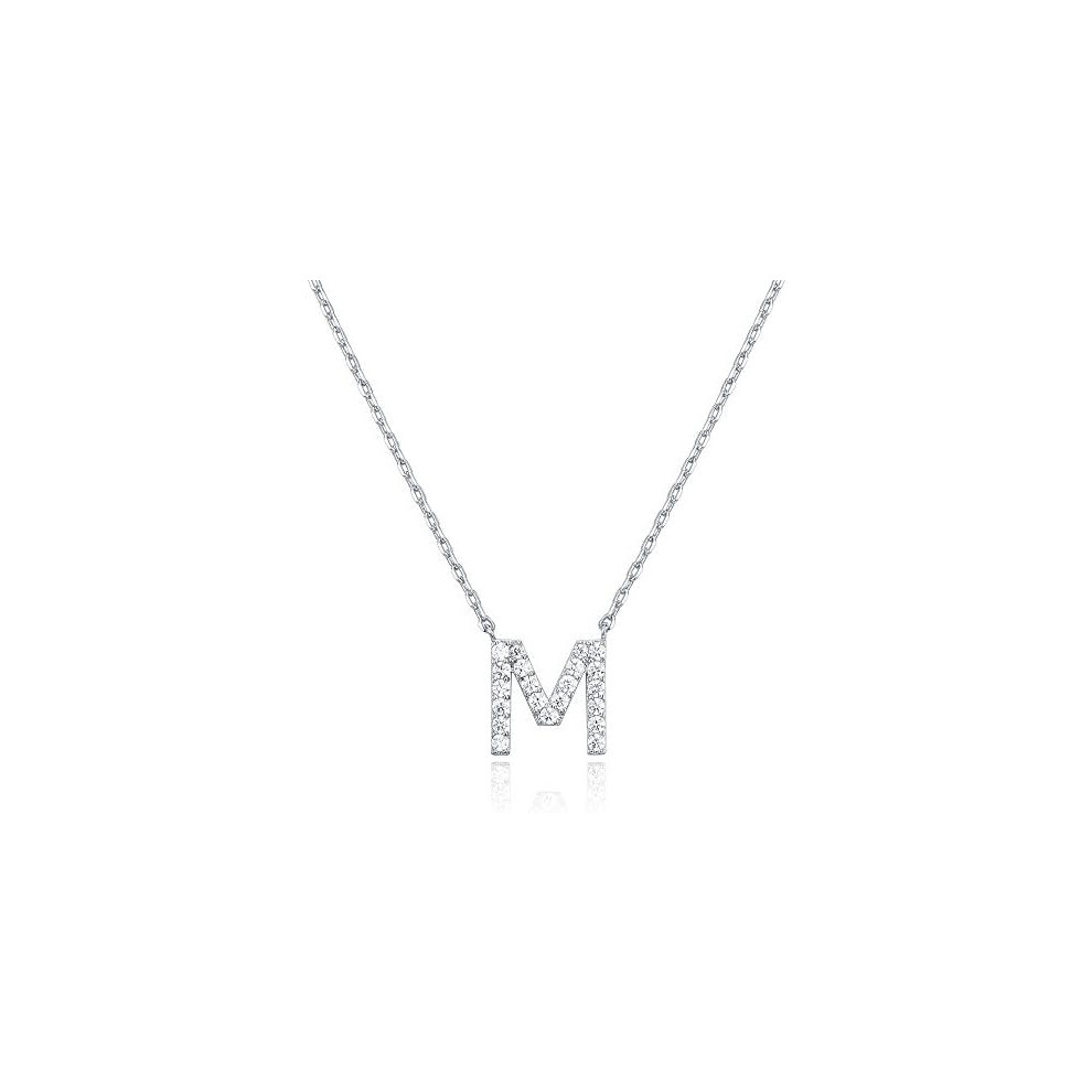 (White Gold, - M) HKEDES 14K White Gold Plated Cubic Zirconia Initial Necklace | Letter Dainty Necklaces for Women