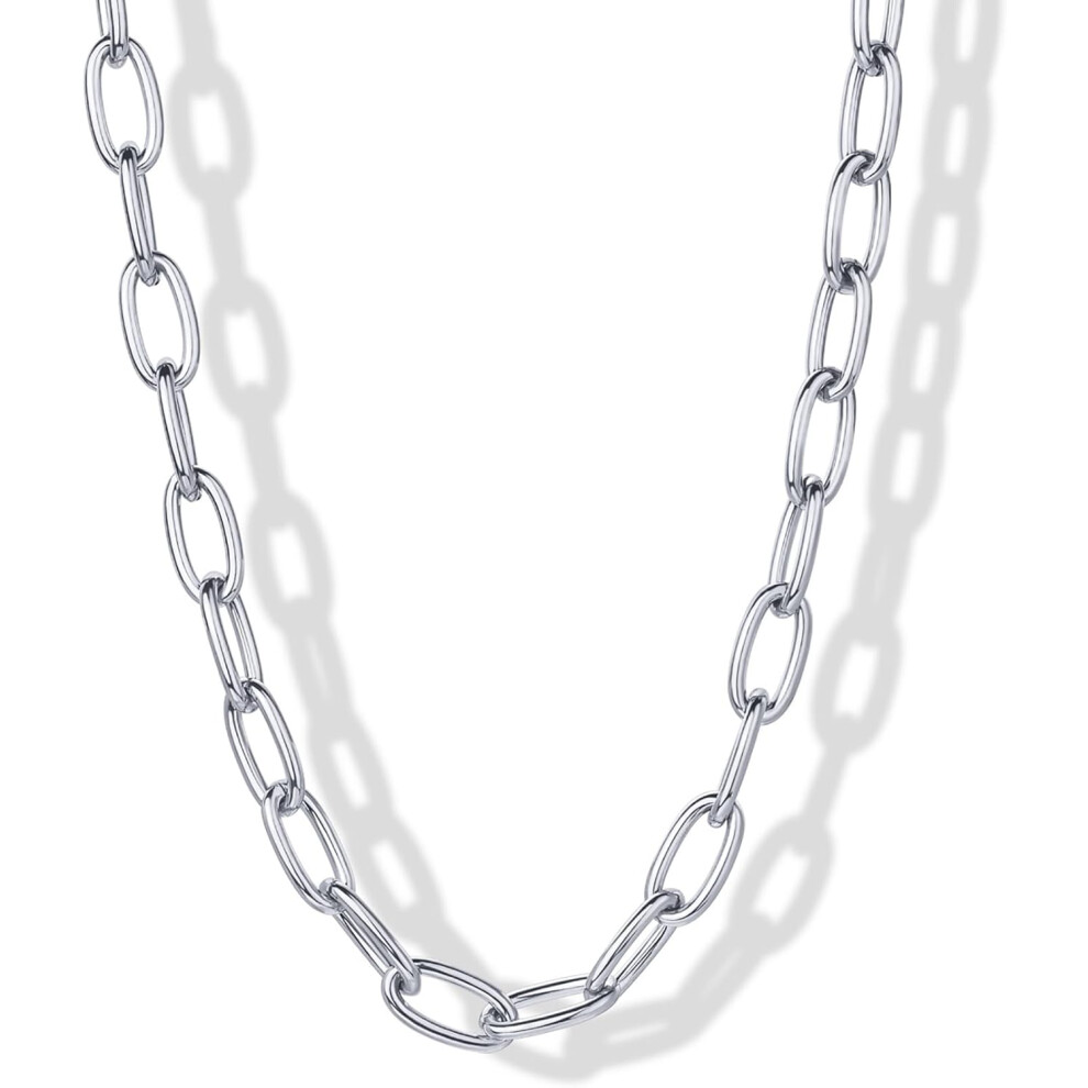 (Large Flat Curb Chain, White Gold) KOUYI 14K Gold Plated Mixed Link Necklaces for Women