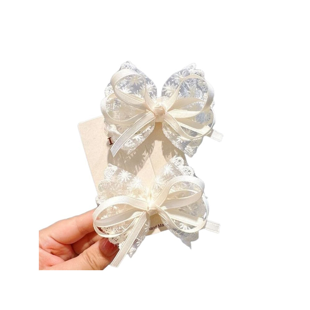 White Lace Bow Hair Clips for Women and Girls, Cute Wedding Hair Accessories with Easy Clip Fastening