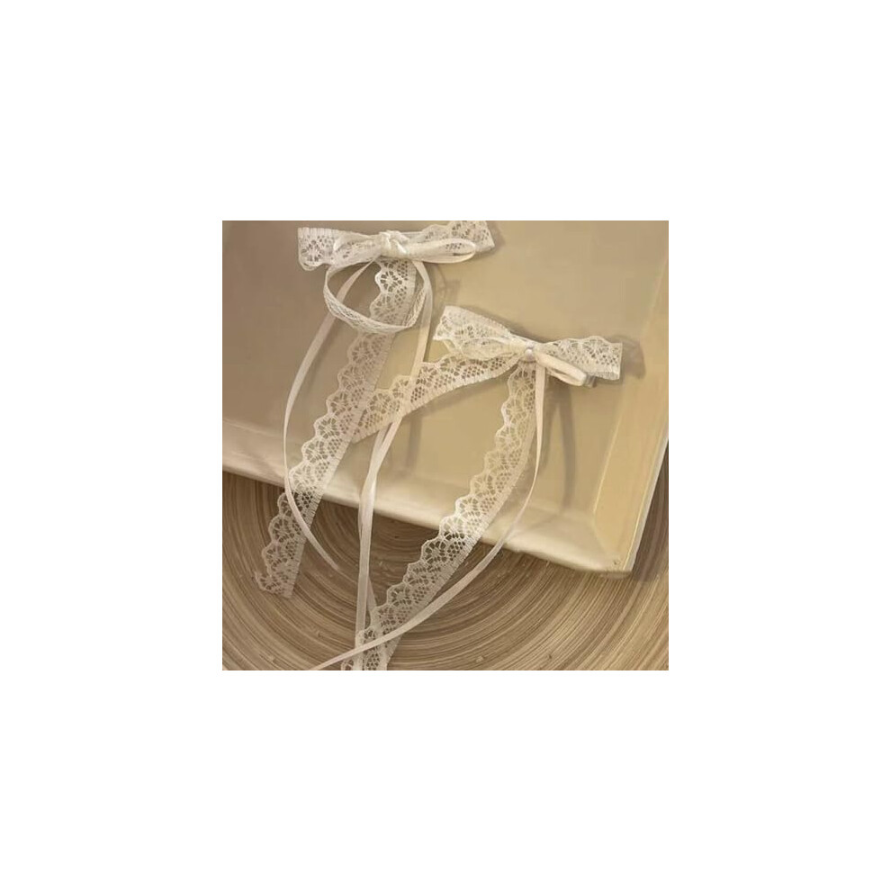 6 PCS White Lace Bow White Lace Hair Bow Clips Long Medium and Short Styles Bows for Hair with Long Tail Hair Accessories for Babies Teenagers To