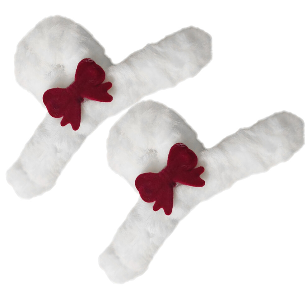 2Pcs Plush White Hair Claw Clips Bow Design Women Hair Accessories