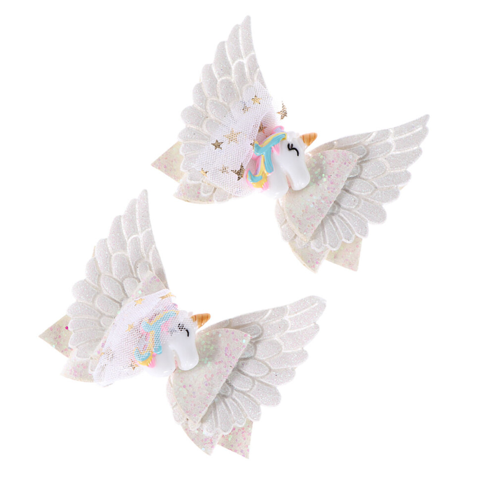 2Pcs White Unicorn Hair Clips Double Layer Sequin Barrette For Girls