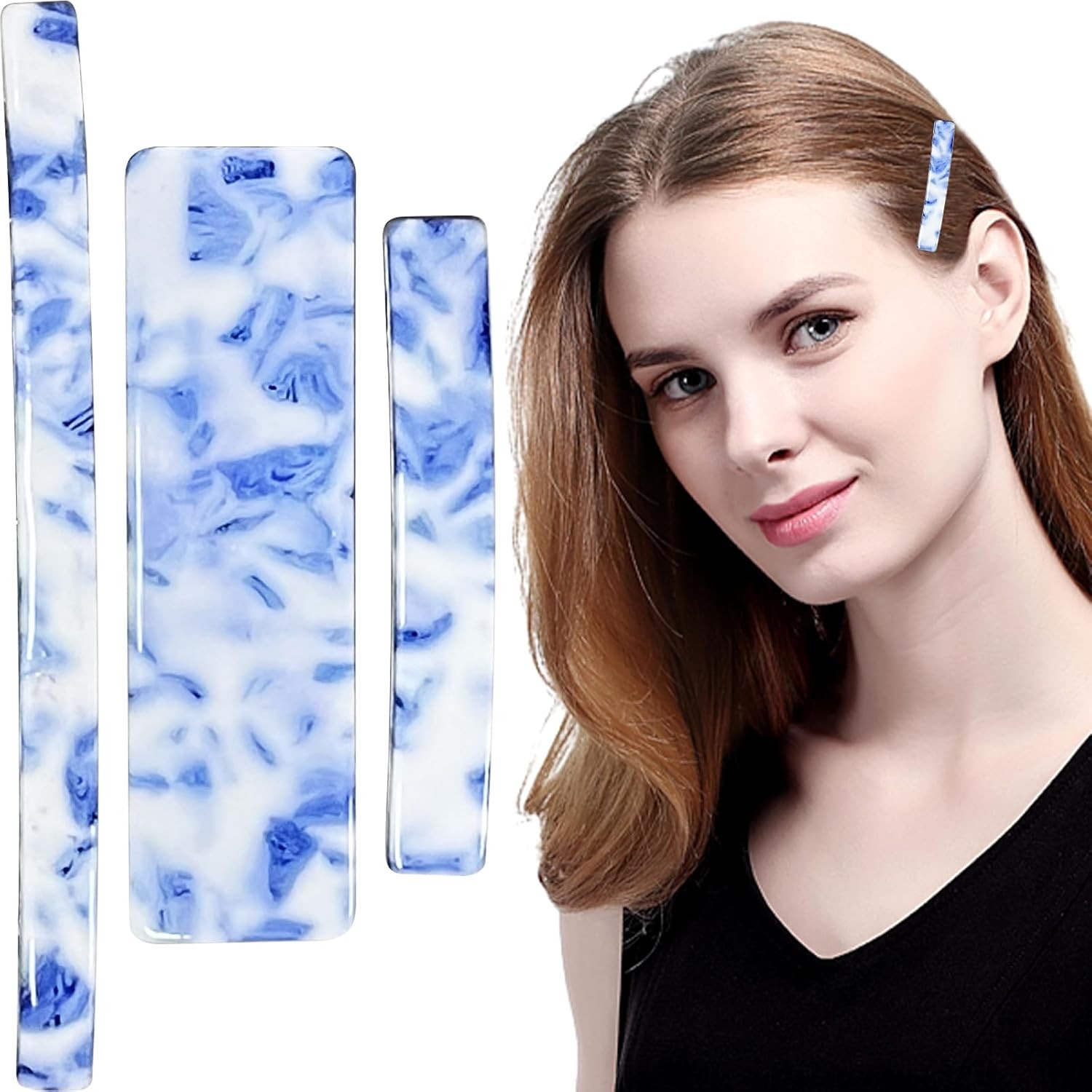 3 Packs Blue & White French Hair Clips, Hair Barrettes Strong Hold Vintage Hair