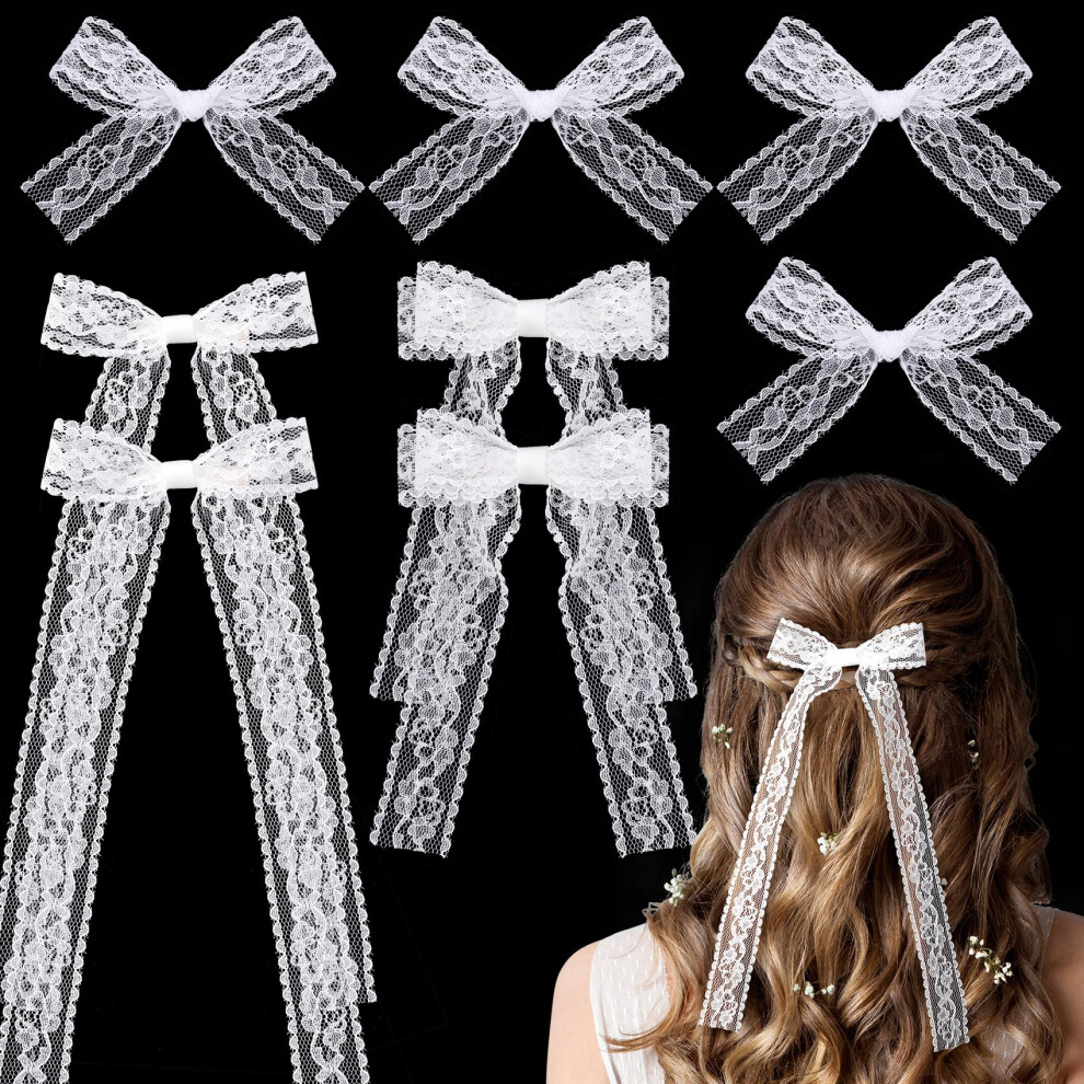 KIKOOD 8pcs White Lace Hair Bows Clips Kits for Women Cute Hair Bow Alligator Hair Barrette with Long Tail Ribbon for Wedding Prom Party Bachelorette