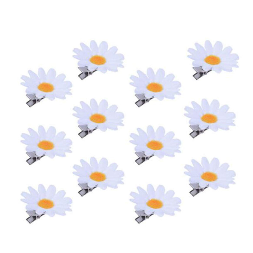 12Pcs White Daisy Hair Clips Durable Flower Barrettes for Women Girls