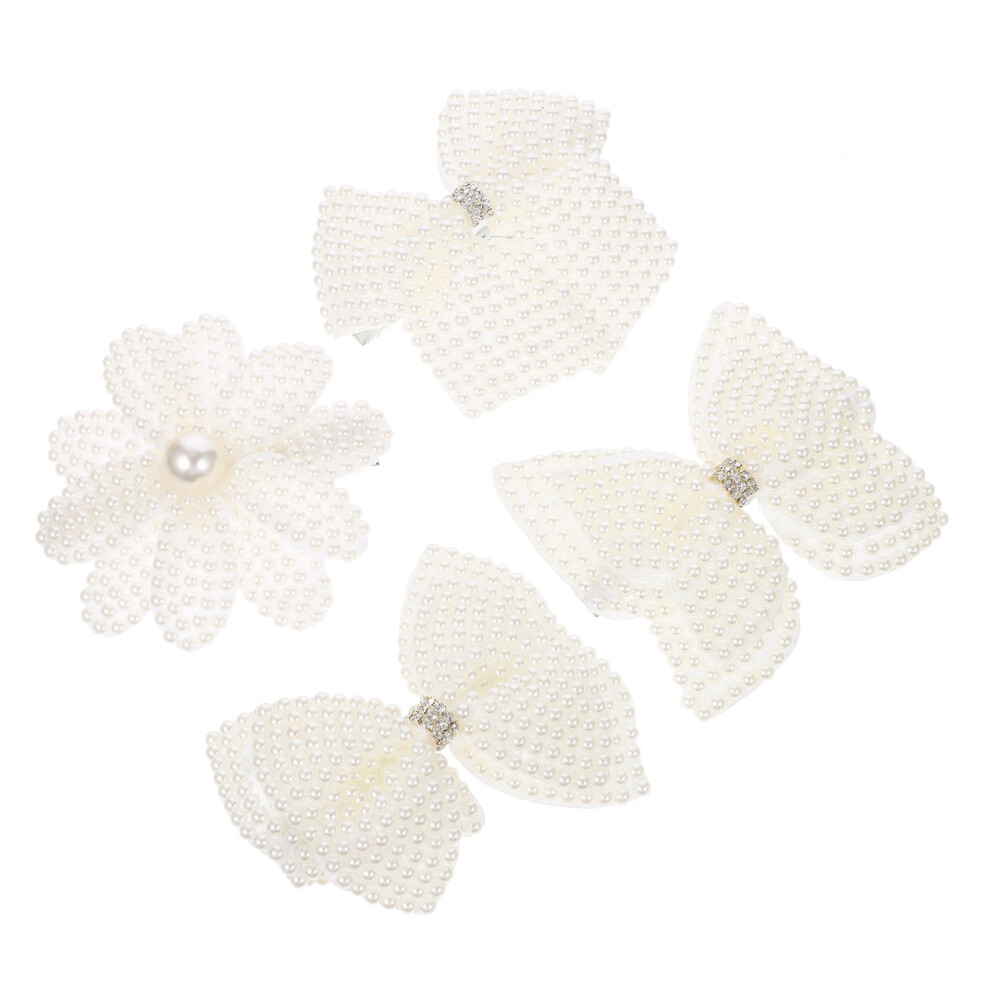 6Pcs White Bow Hair Clips for Girls Women Faux Pearl Metal Barrette