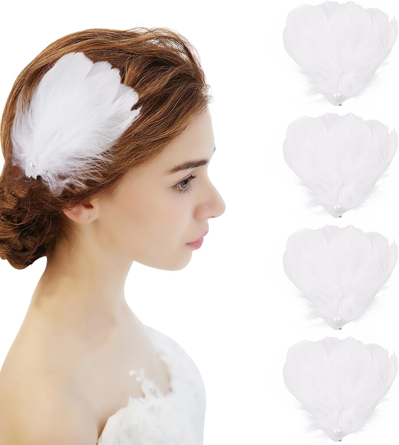 MWOOT 4 Pcs White Feather Hair Clips, Swan Feather Headpiece Ballet Hair Access