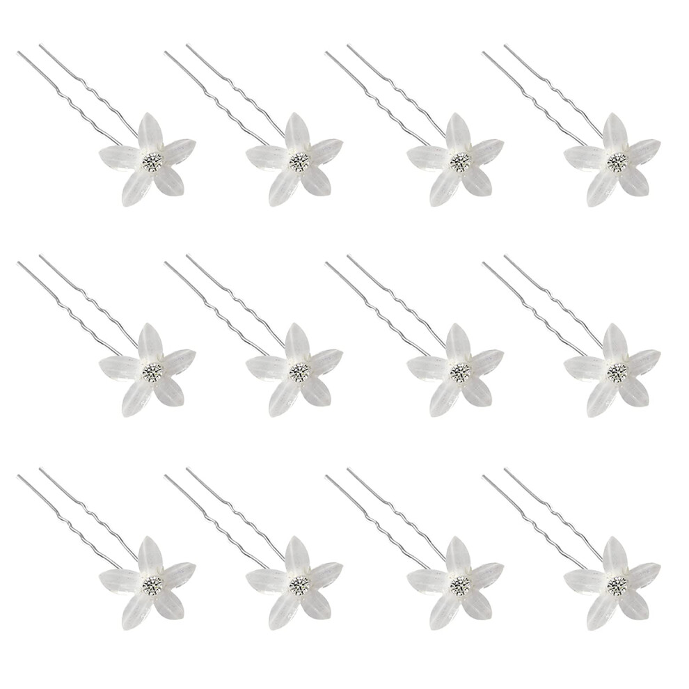 20Pcs Mini Rhinestone Hair Pins White Flower Hair Clips Cute Girl Hair Accessory
