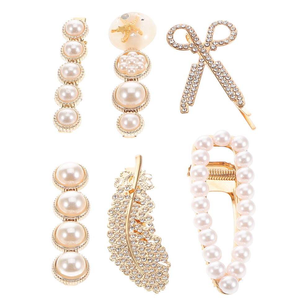 6Pcs White Pearl Rhinestone Hair Clips Elegant Hairpins for Women