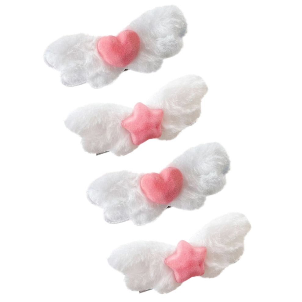 Garneck 4 Pairs Plush Angel Wings Hairpins Pink White Decorative Hair Clips for Party Head Accessories Barrette Set Random Color