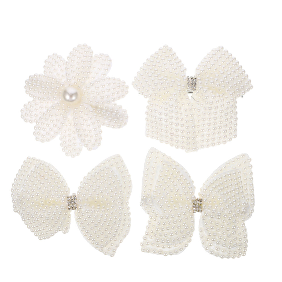4pcs white floral rhinestone hair clips for women
