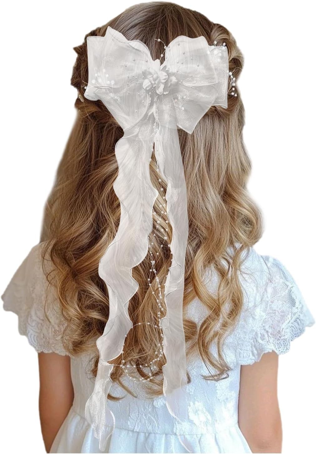 Holy Communion Hair Accessories for Girls – White Bow Hair Clips with Pearls