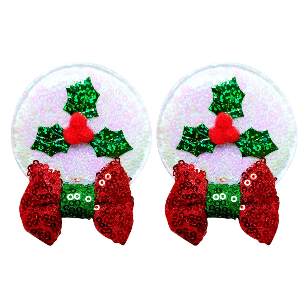 Red and White Mouse Ears Hair Clips with Sparkling Sequin Bow for Girls Holiday Party Cosplay