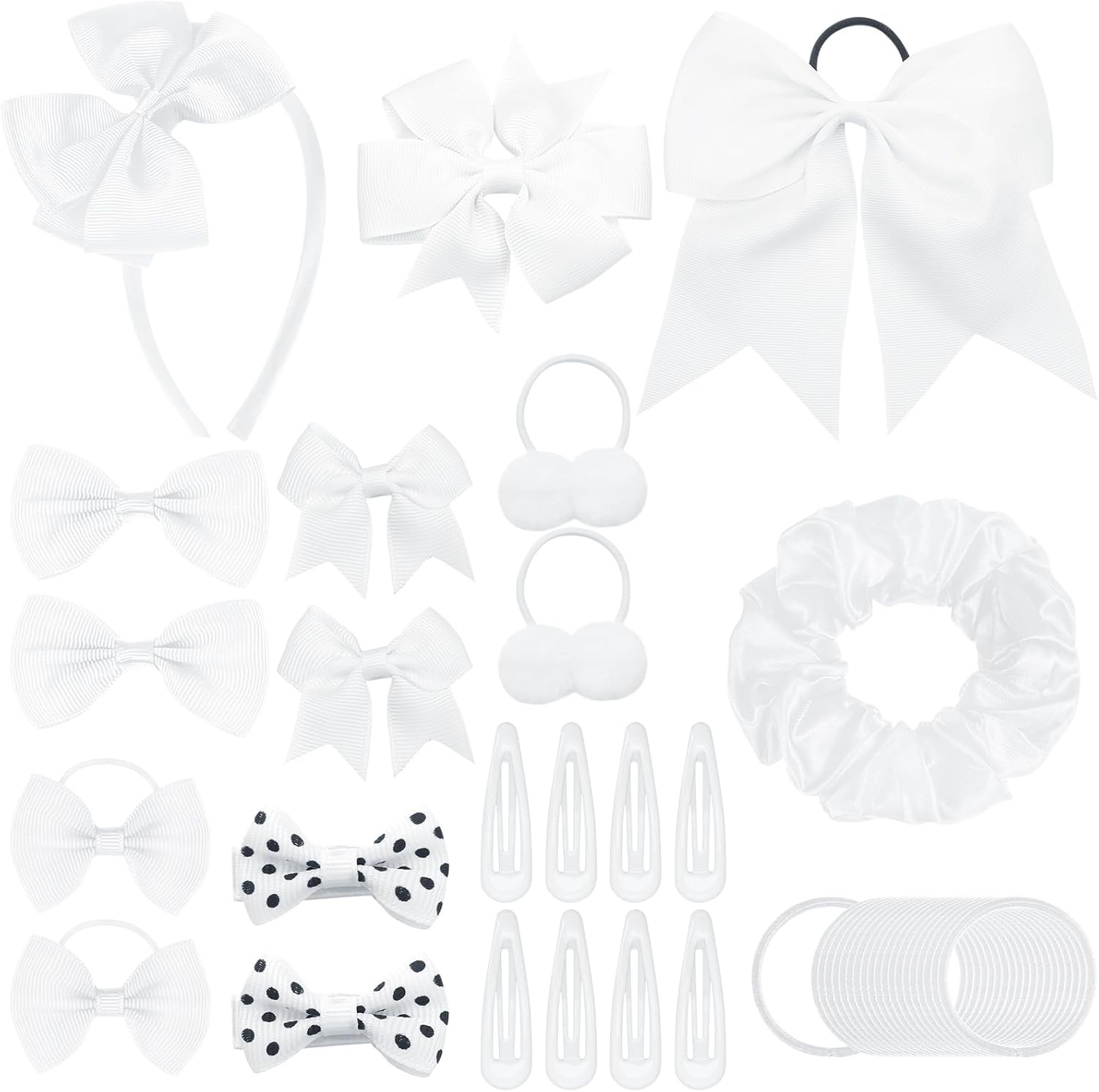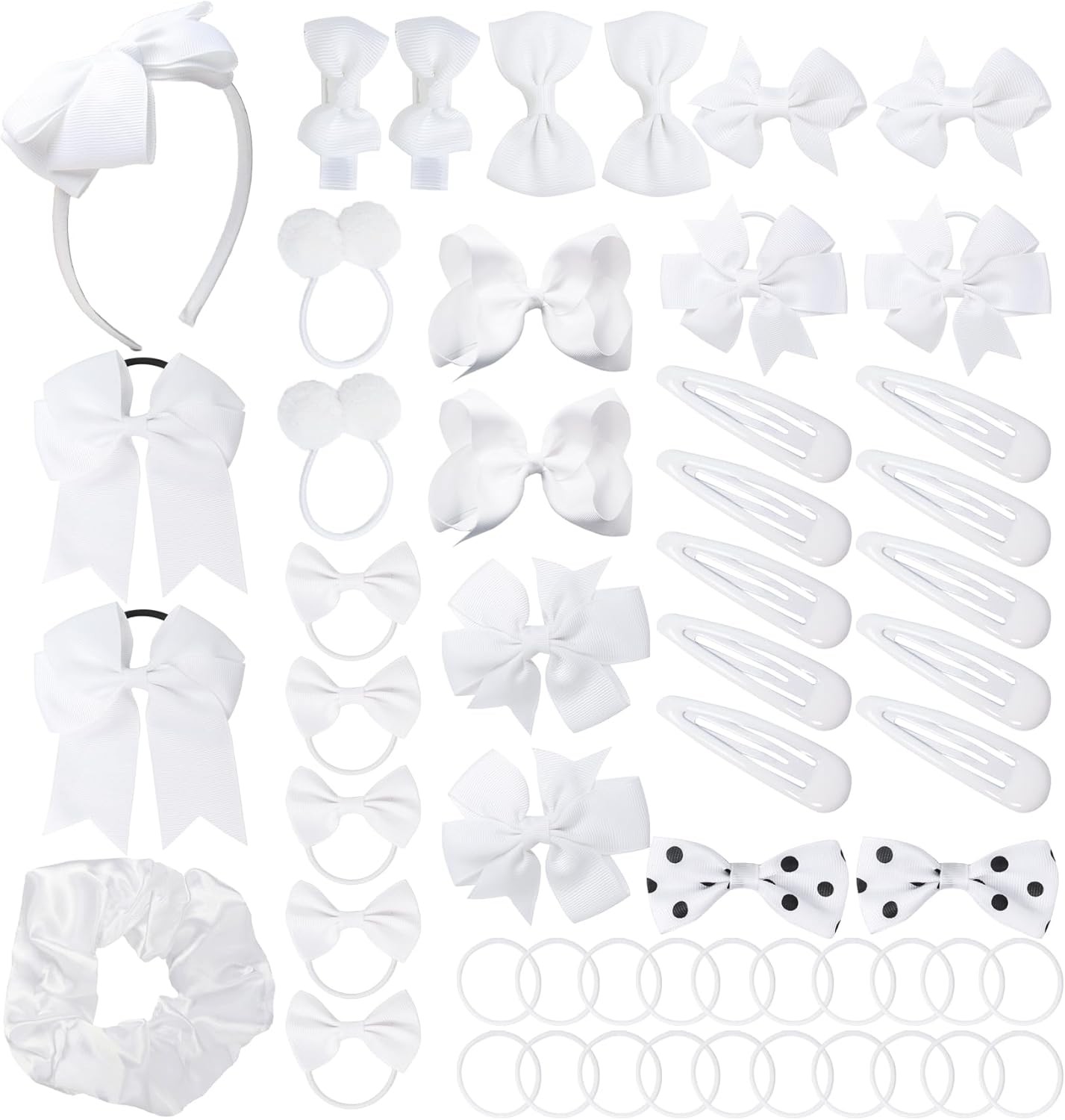 55Pcs Girls School Hair Accessories White Bow Hair Clips Bow Headband Ponytail