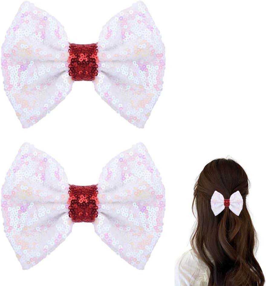 White Sparkly Glitter Hair Clips Bow Hair Accessories For Women Girls Christmas