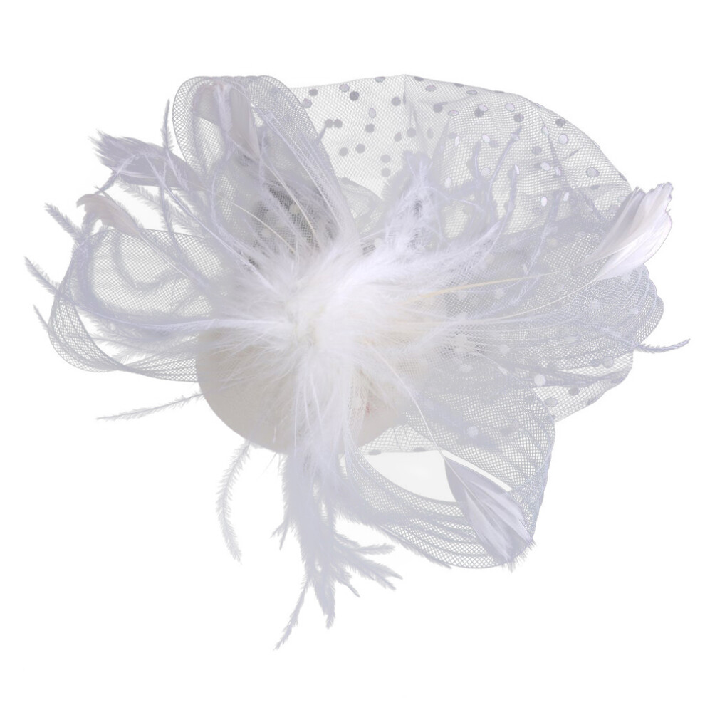 3Pcs White Bridal Fascinator Hair Clips Mesh Veil Flower Beads Clip