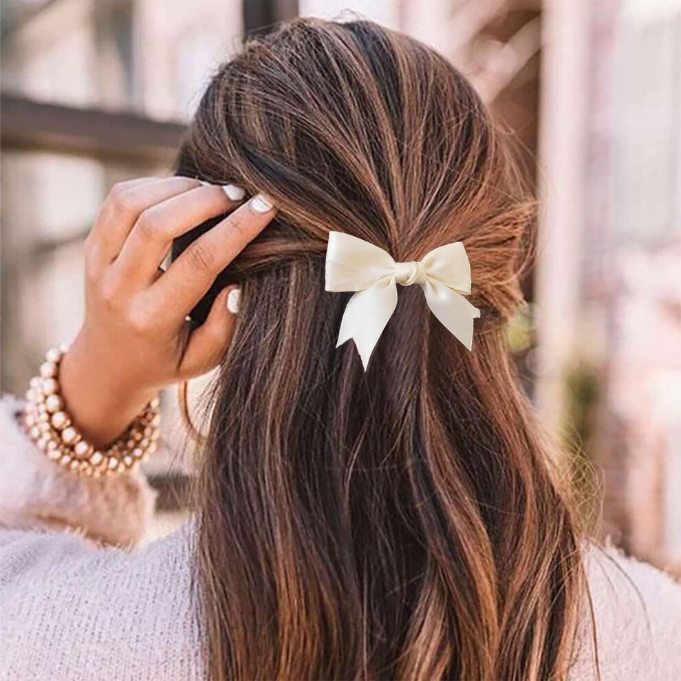 Jugielu Vintage Hair Bow Clips Barrette White Satin Bowknot Hair Clips Tail Silk Bow Hair Accessories Small Ribbion Bow Hair Barrettes for Women Headd