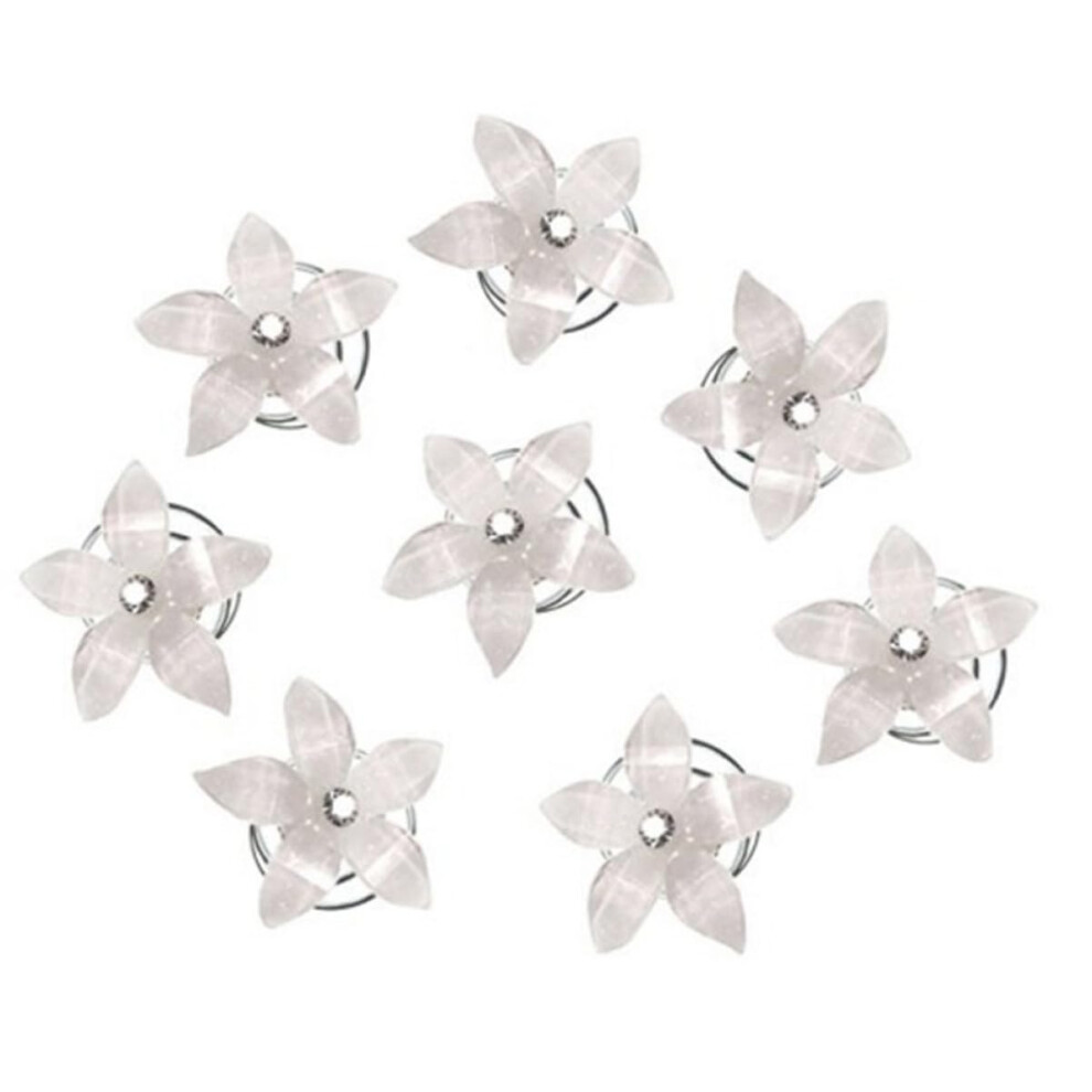 8 Pcs White Floral Rhinestone Hair Clips For Women