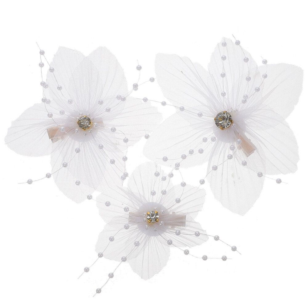 3Pcs White Fabric Flower Hair Clips for Girls Women Elegant Decoration