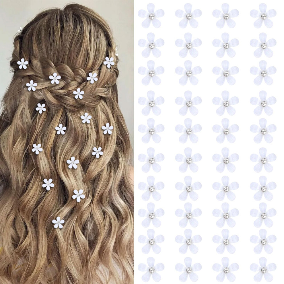 40 Pack Small White Flower Hair Clips Set - Mini Non-Slip Grip Clips with Rhinestone Centers for Women's Hairstyles