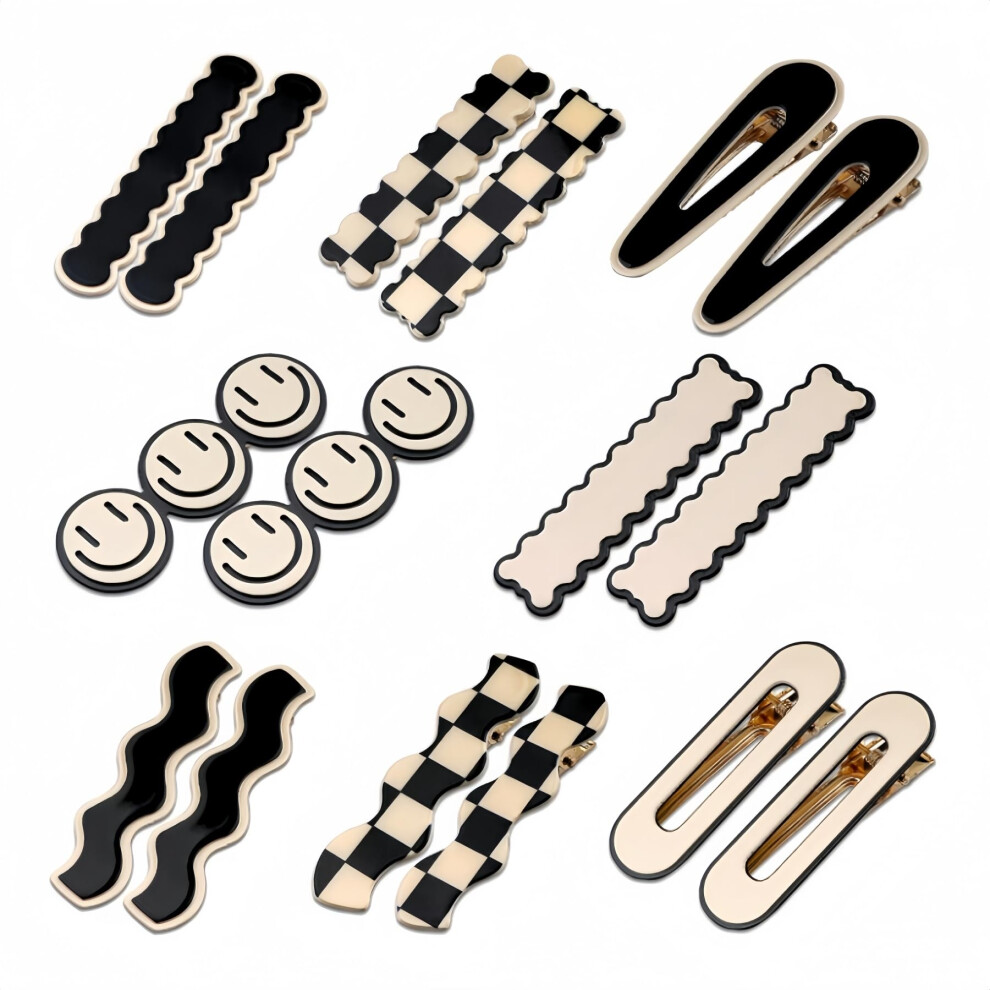 16PCS Black and White Checkered Hair Clips, No Bend Geometric Duckbill Barrettes for Women and Girls