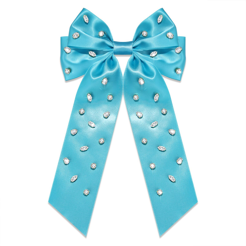 Rhinestone Hair Bows for Women White Jeweled Hair Bow Clips Large Silky Hair Bows Sparkling Crystal Hair Ribbons with Long Tail Fashion Hair Accessori
