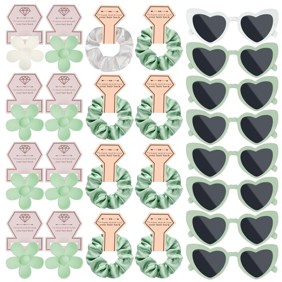 Bridesmaid Proposal Gifts White Hair Clips Flower Bridesmaid Hair Claw Clip,Satin Bridesmaid Hair Scrunchies,Cute Heart Bachelorette Sunglasses Girls