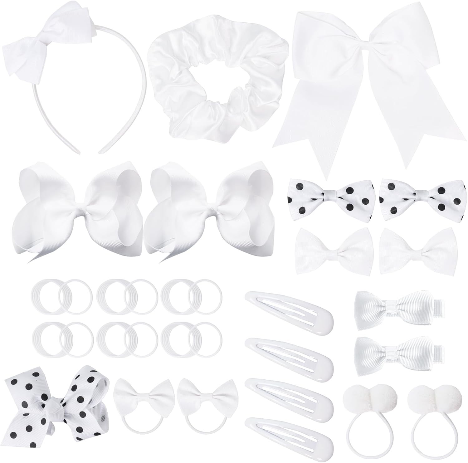 50Pcs Girls School Hair Accessories Kit White Bow Hair Clips Headband Ponytail
