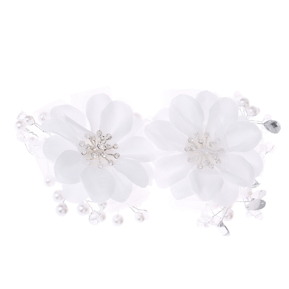 white cloth flower hair clips with crystal beads for bridal wedding