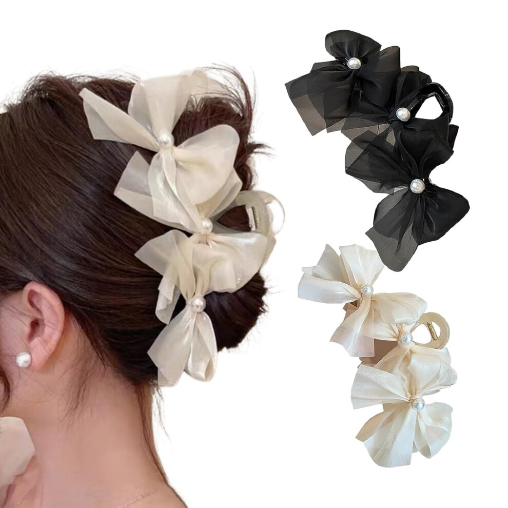 Prosy White Pearl Hair Clips Hair Claw Clamps Bow Hair Claw Clip Non Slip Clips