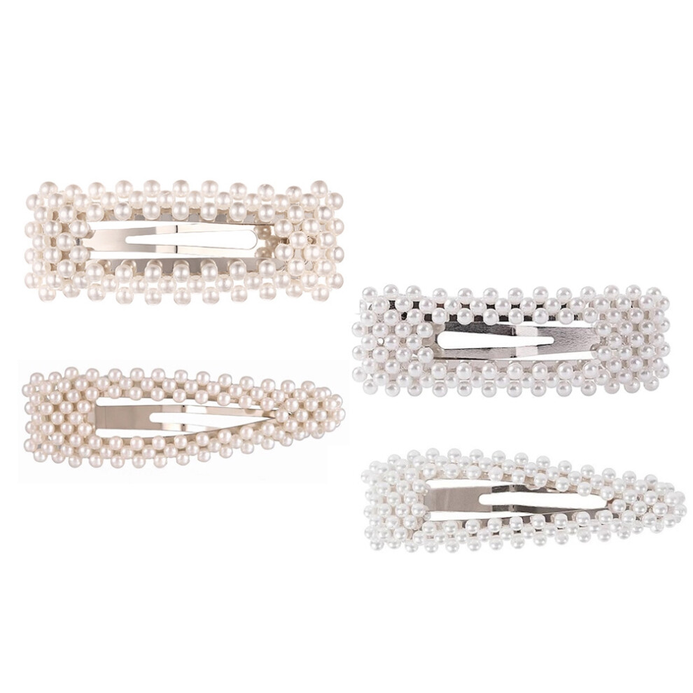 4Pcs White Pearl Hair Clips Women Hairpins Simple Elegant Barrettes