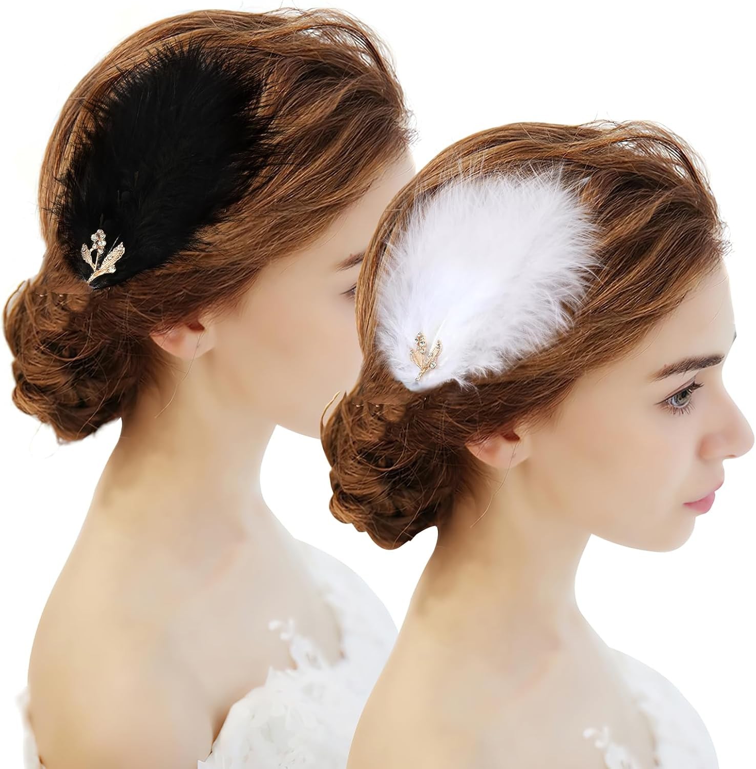 MWOOT 2Pcs White Black Feather Hair Clips, Feather Fascinators for Women Girls,