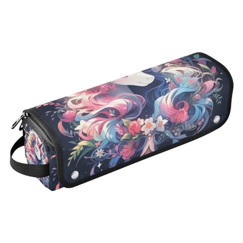 EtherSpher 2-in-1 Curling Iron Travel Case with Iron Mat Waterproof Curling Iron Travel Case for Curling Iron Straightener Flat Hair Dryer, Cartoon Cute White unicorns Hair Accessories Organizer