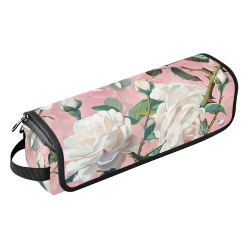 Pink Peonies White Lilies Hair Tools Travel Bag with Heat Resistant Mat Curling Iron Travel Holder Storage Bag for Curling Iron Straightener Flat Hair Dryer