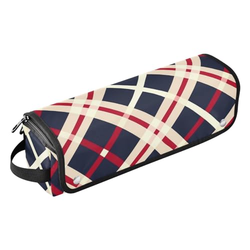 EtherSpher Hair Tools Travel Bag and Heat Resistant Mat Curling Iron Travel Holder Storage Bag for Curling Iron Straightener Flat Hair Dryer, Red Blue and White Plaid Pattern Travel Essentials for