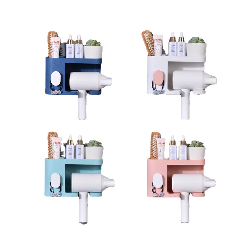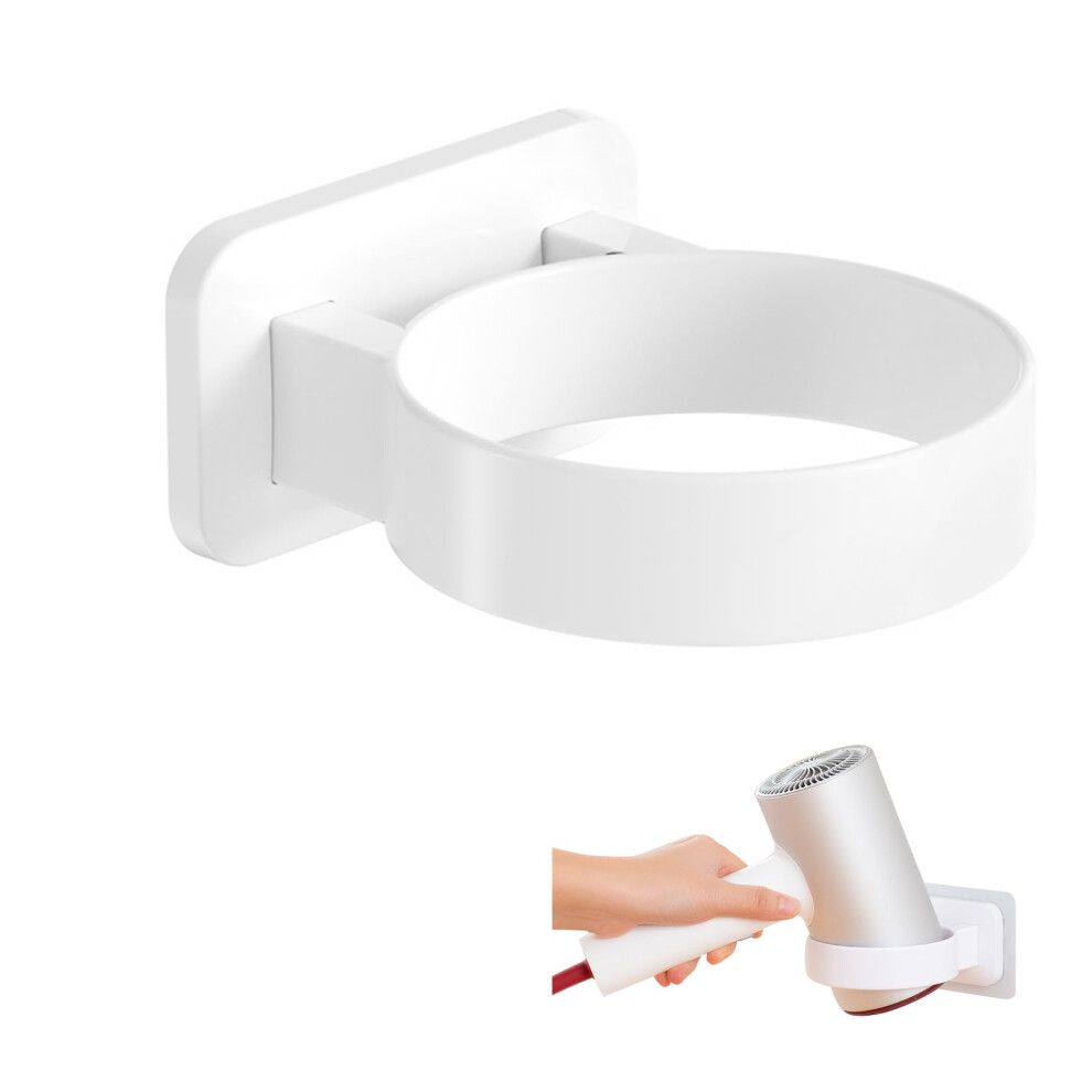 (White) Hair Dryer Holder Bathroom Hair Dryer Storage Rack Wall Mount Bath Tool Organizer
