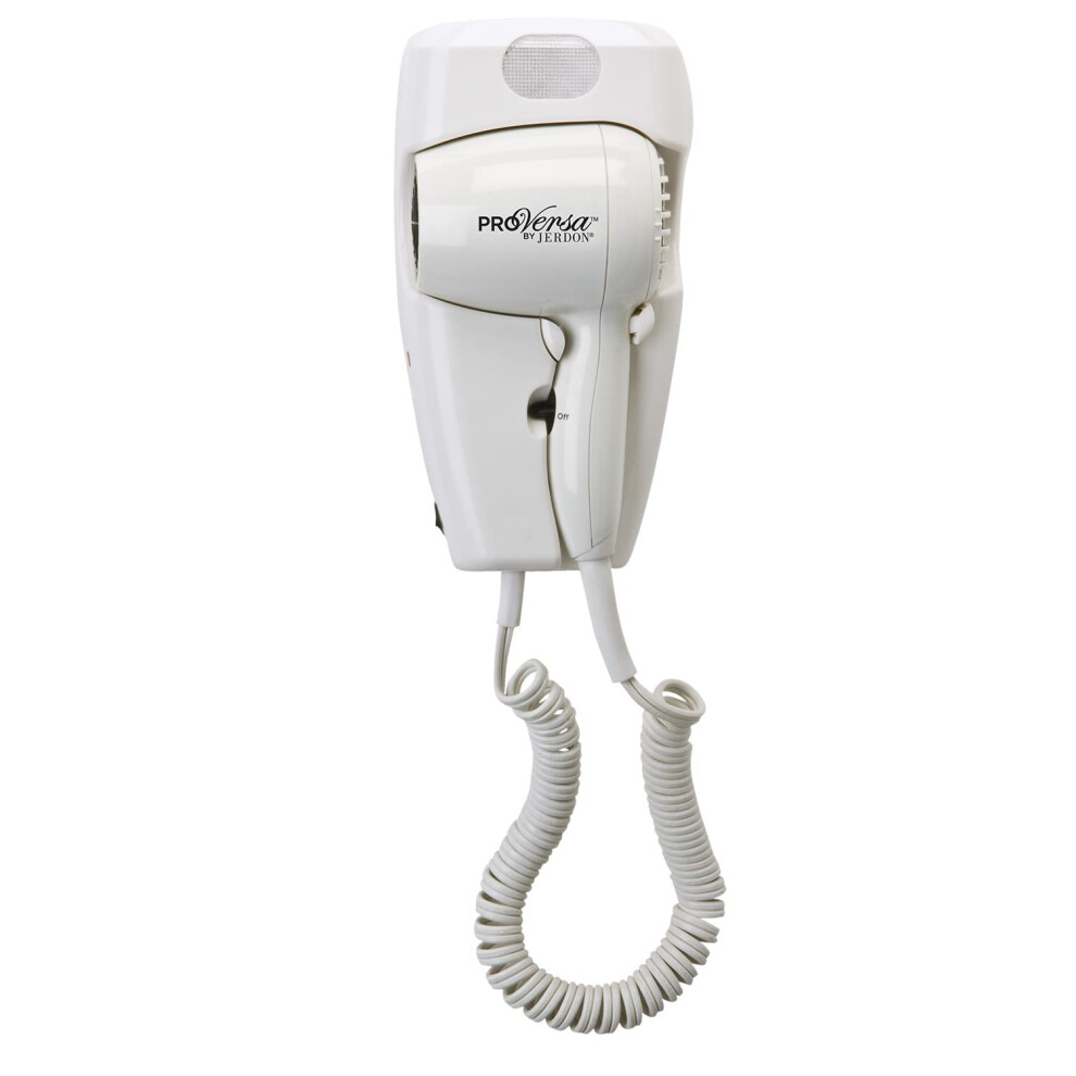 Jerdon Wall-Mount Hair Dryer - White Plug-in Hair Dryer with 32" Power Cord - Hotel Style Wall Mounted Hair Dryer - JWM8C