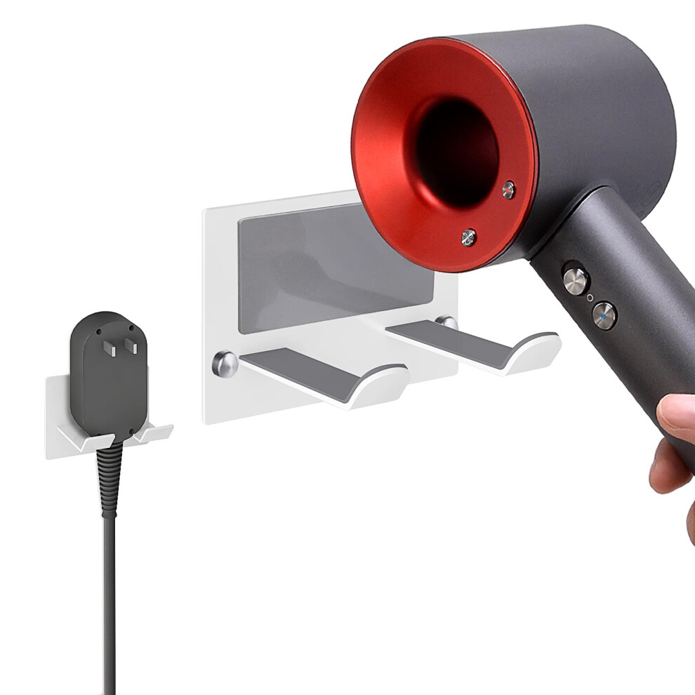 (a-White) Hair Dryer Organizer 3 in 1 Wall Mounted Hair Dryer Holder Hair Tool Organizer Bathroom Blow Dryer Holder Hanging Hot Tool Holde