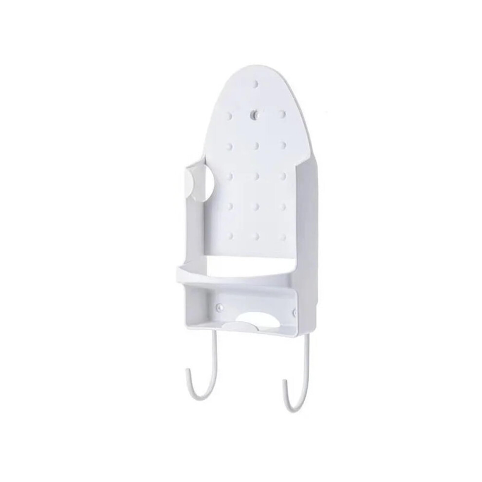 Plastic Steam Iron Storage Rack Wall Mounted, Steam Generator Rack With 2 Hooks, White Hanging Hair Dryer Display