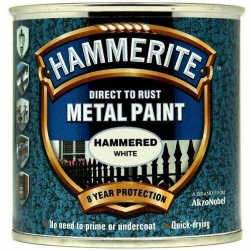 Hammerite Direct To Rust Hammered Finish Metal Paint White 250Ml HMMHFW250