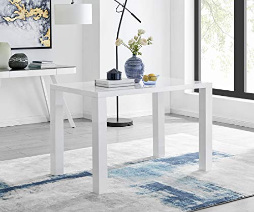 GOLDFAN White High Gloss Dining Table Modern Rectangle Kitchen Tables Wood Style for 4-6 People Dining Room Furniture (Table Only) [Energy Class A++]