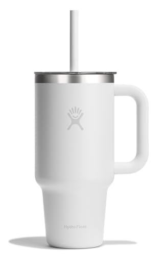 Hydro Flask – Wide Flex Straw Travel Bottle 946 ml (32 oz) – Stainless Steel, Leakproof, Fits Most Cupholders – Insulated Cold 24 Hrs – Wide Mouth, Ice Cube Friendly – White