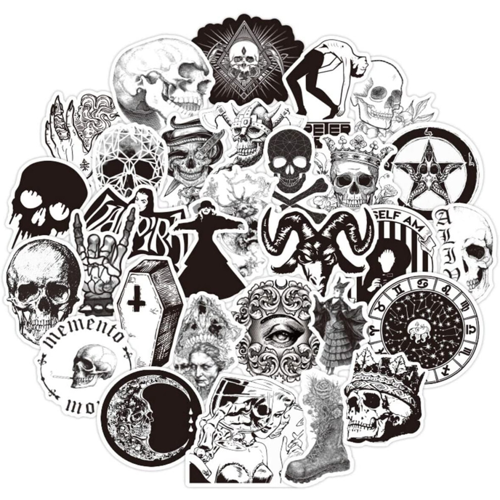100PCS Gothic Stickers for Water Bottle,Black White Skull Stickers,Waterproof Vinyl Stickers Perfect for Hydro Flask