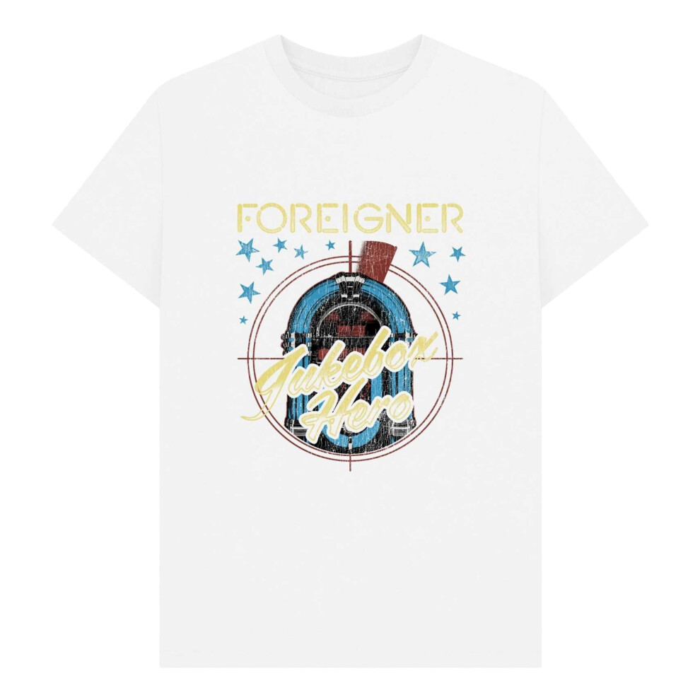 (S, White) Foreigner Unisex Adult Jukebox Graphic T-Shirt