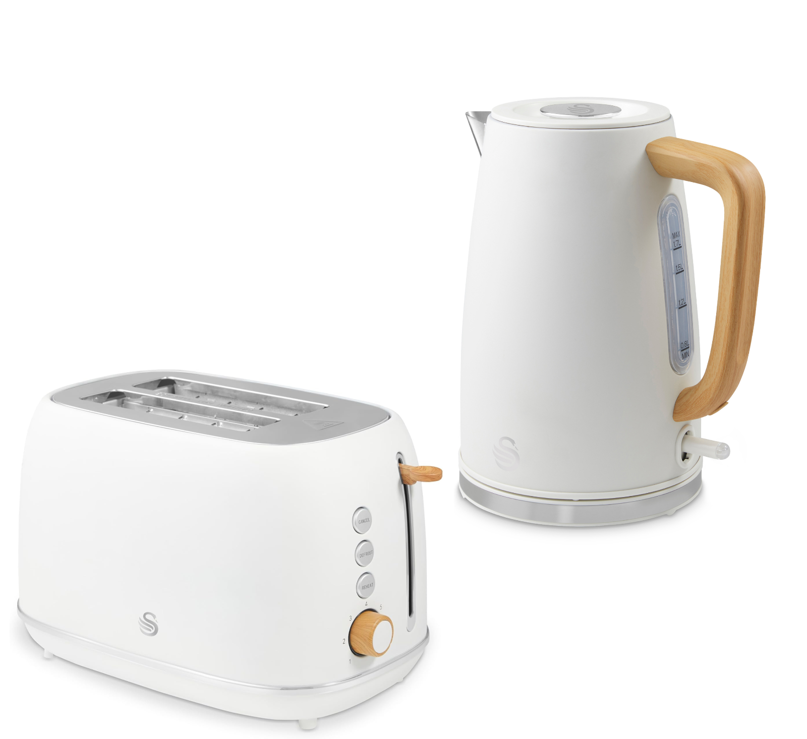 Swan Fjord Jug Kettle & 2 Slice Toaster Set in White with Wooden Accents