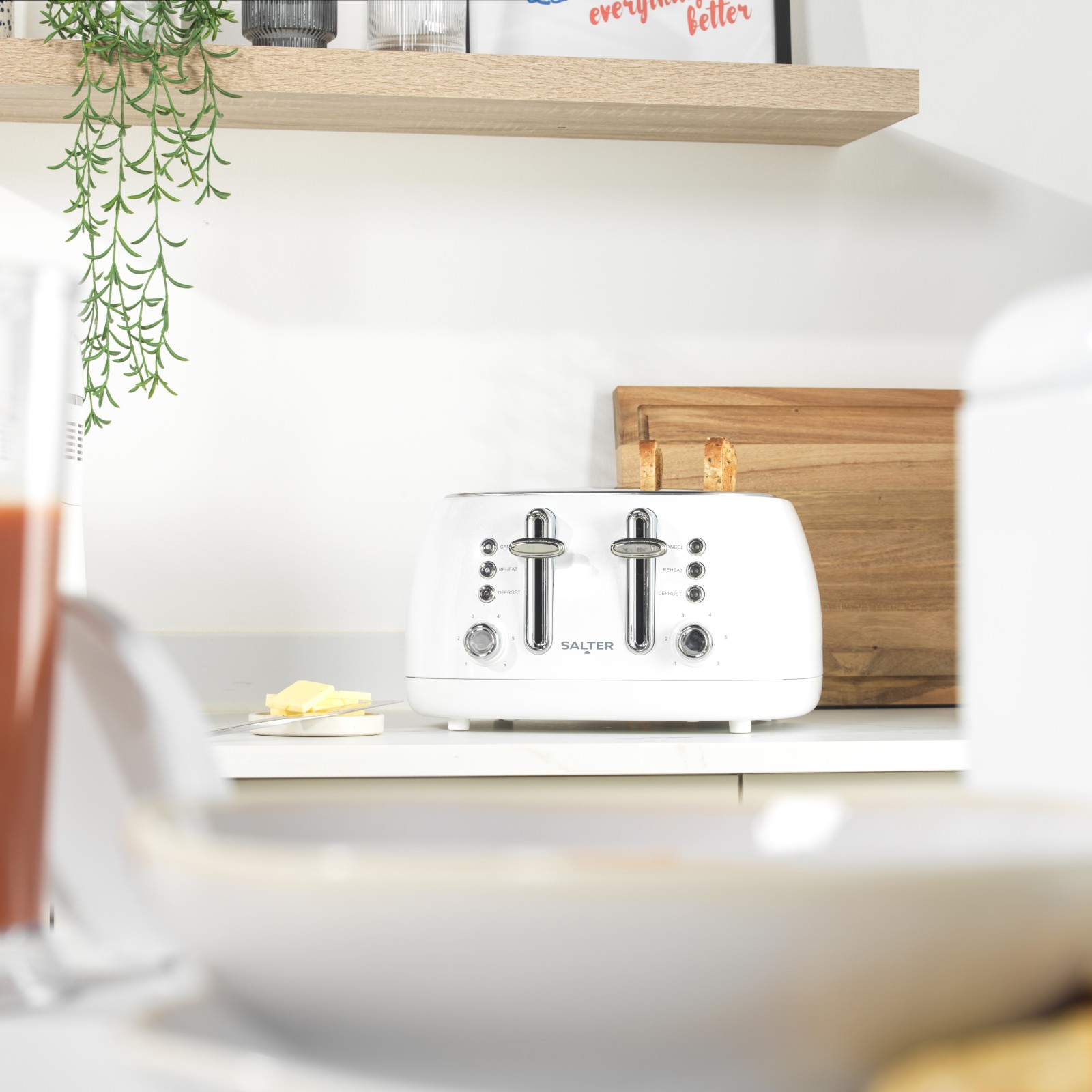 Salter Kettle & 4-Slice Toaster Set 1.7 L Fast Boil Wide Toasting Slots White