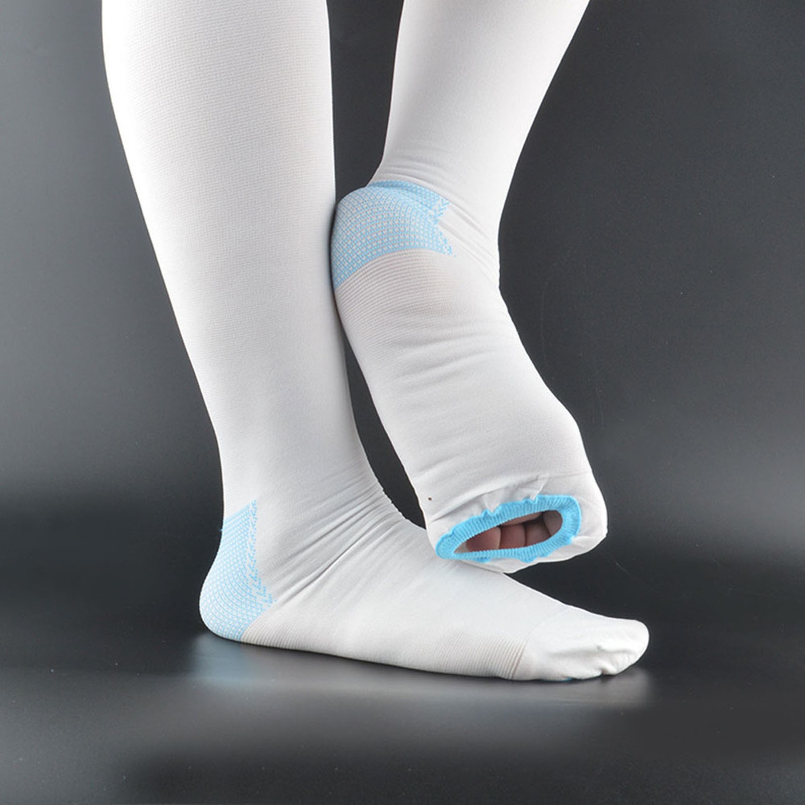 White L Compression Knee High Socks Varicose Veins Socks With Inspect Toe Hole